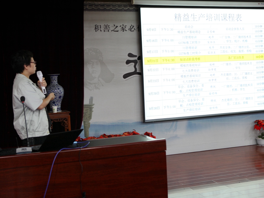 启动仪式后,二厂区技术部副经理吉雪峰进行了《精益之精益生产基础知识》的培训。与会学员个个精神饱满,认真学习聆听。本次管理干部精益思维培训由集团副总经理李海骄发起,二厂IE部具体组织落实,课程包括精益生产、现场管理等23节课程。主讲人均来自生产、IE部专业技术人才。